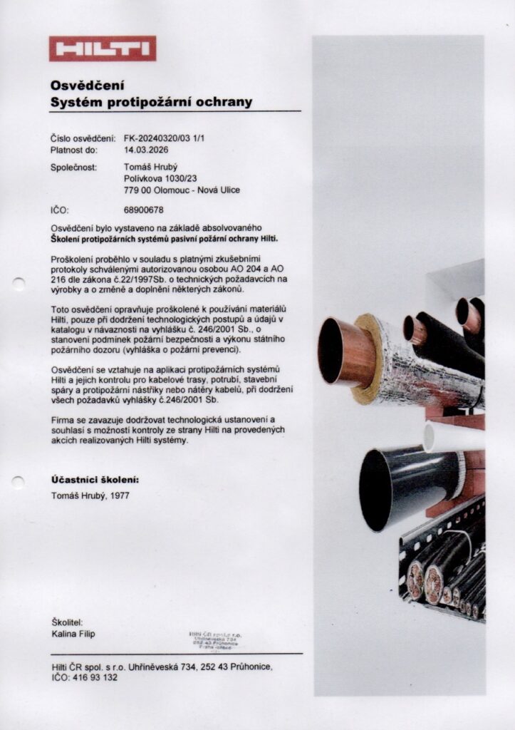 Máme všechna nezbytná povolení a osvědčení pro vykonávání činnosti. Můžeme vám tak nabídnout vysokou kvalitu a garanci za odvedenou práci.